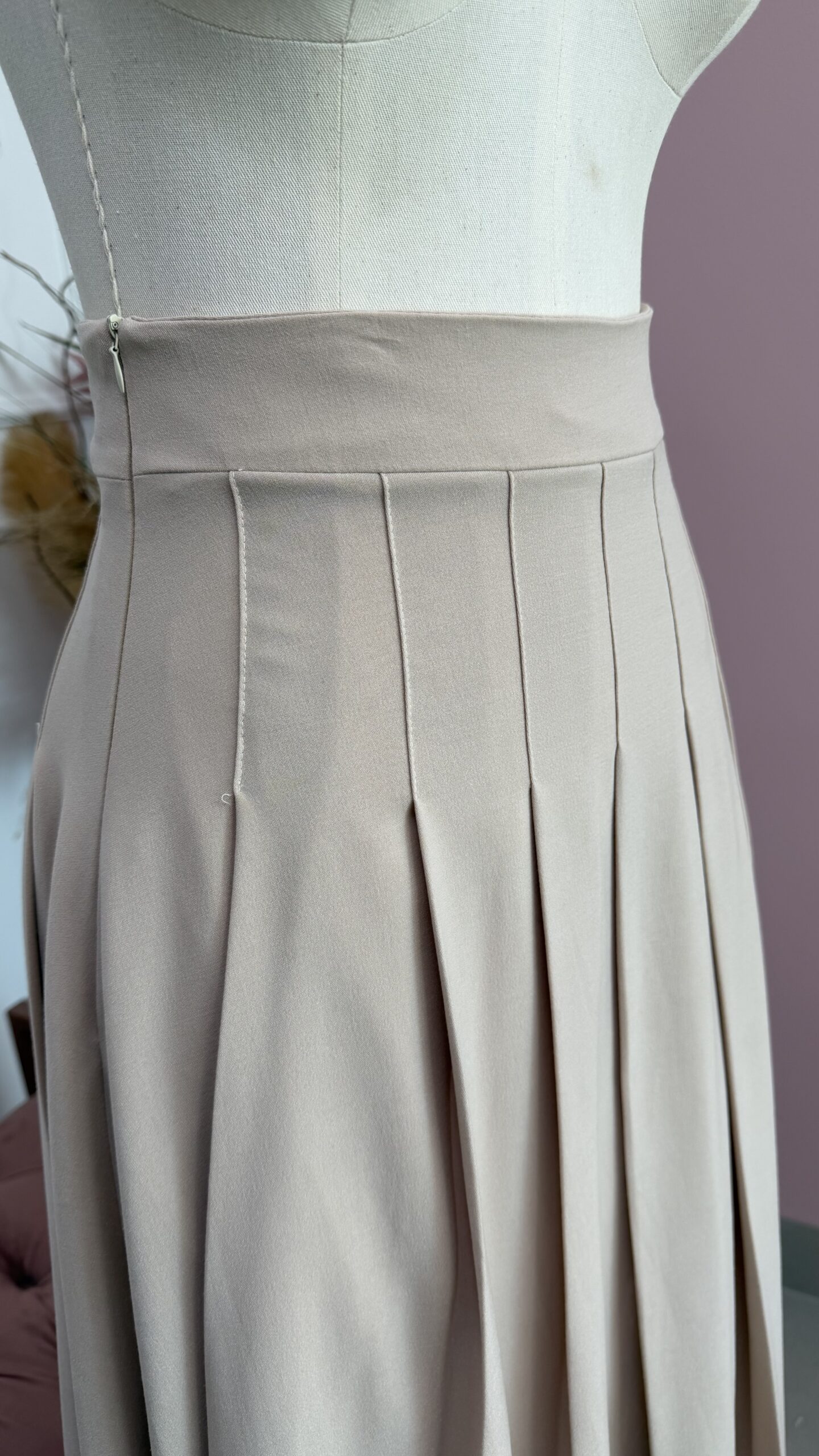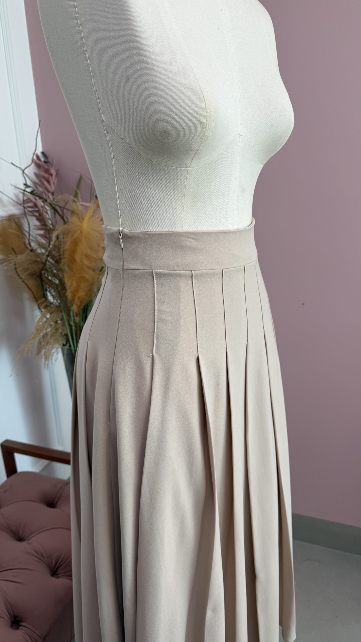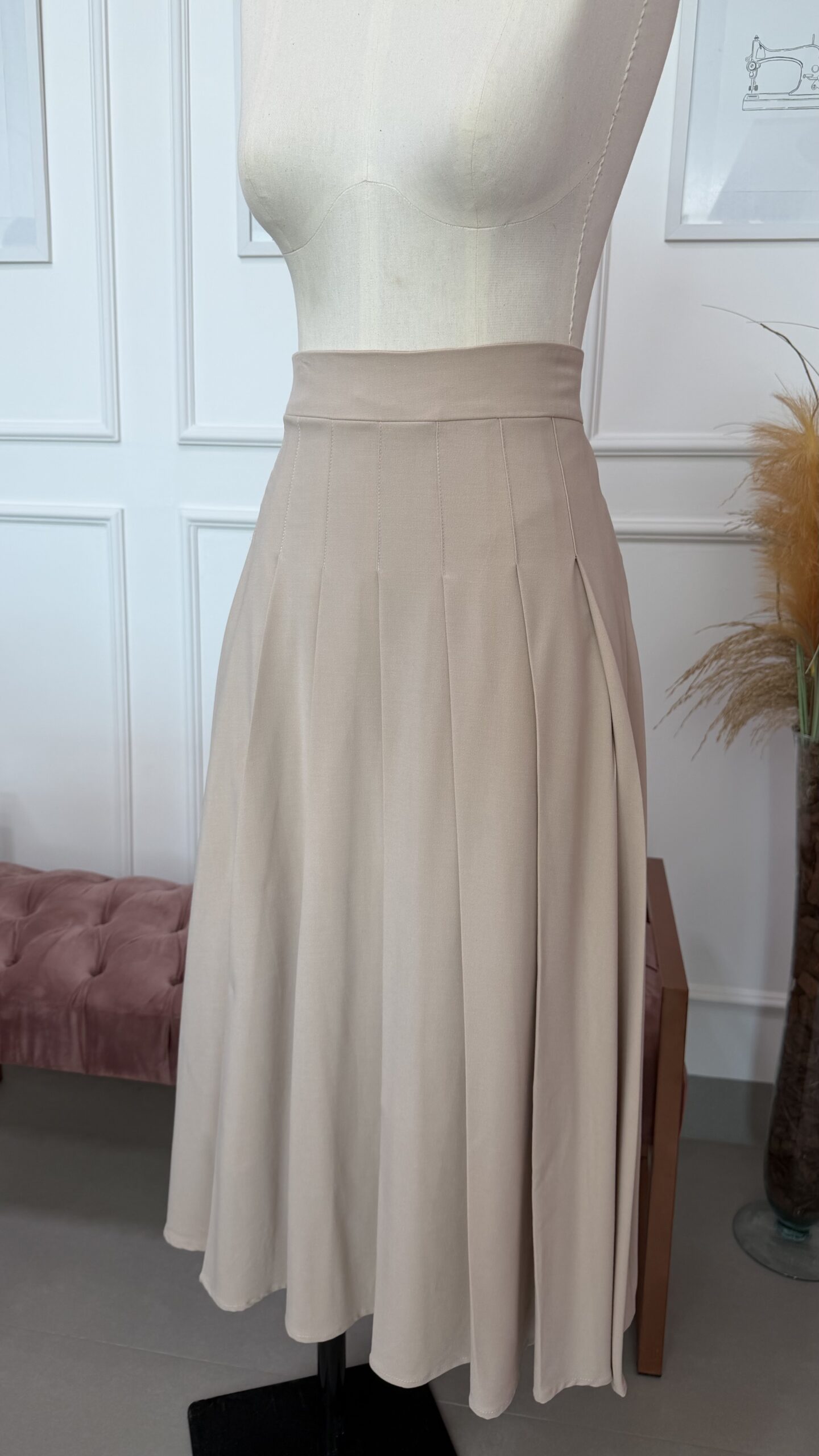 Essa saia é sinônimo de elegância e modernidade com seu estilo em alafaitaria, além de ser super versátil e está em alta! Com cós anatômico, pregas rebatidas no estilo colegial e comprimento midi. O sinônimo da elegância!
